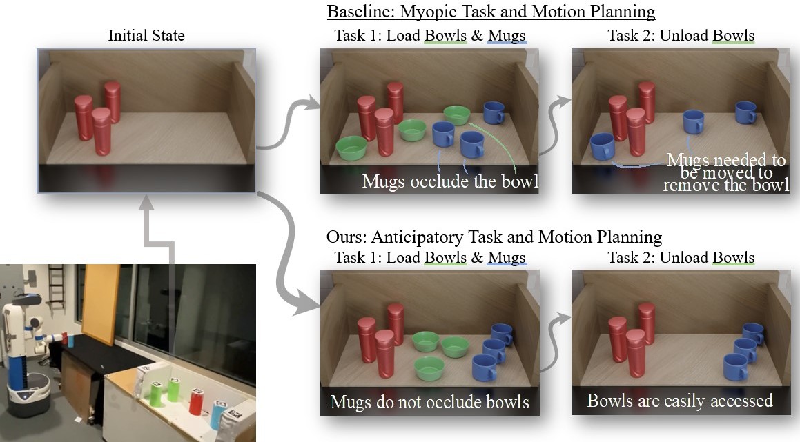 More broadly, I am interested in enabling robots to reason not only about how to complete the task at hand, but also about how their current actions shape the cost and feasibility of future tasks in the same environment.